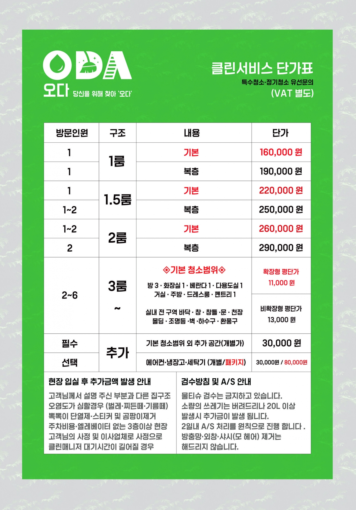 오다홈케어 클린서비스 단가